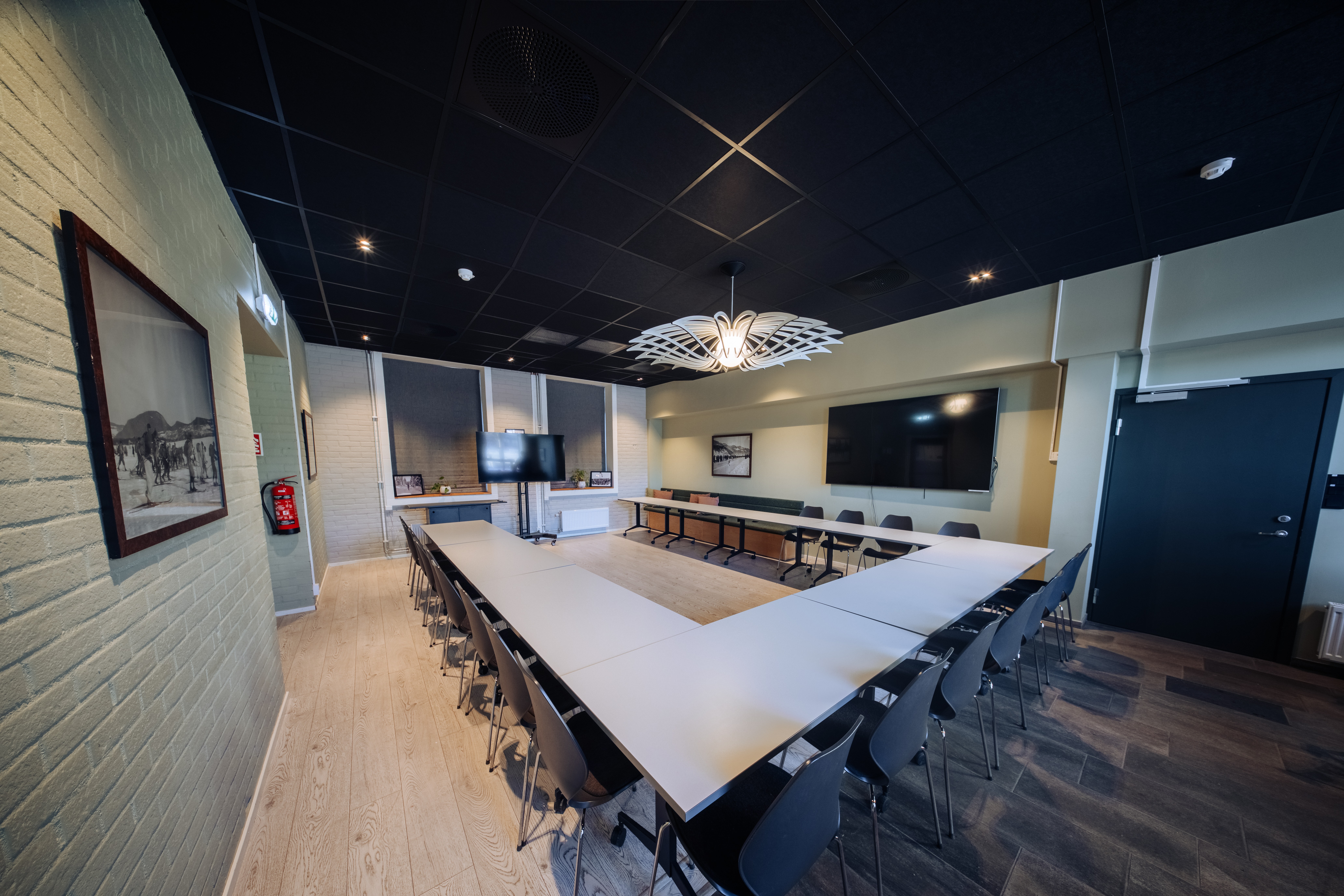 Inkluderer 3 møterom og fellesrom med 2 langbord – dere har hele møteromsavdelingen «for dere selv». Fellesrommet er fint for bespisning/selskap for inntil 25 personer (egen prising).